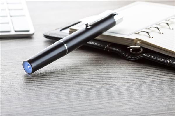 Latarka lekarska w kształcie długopisu. Dostarczana z bateriami.