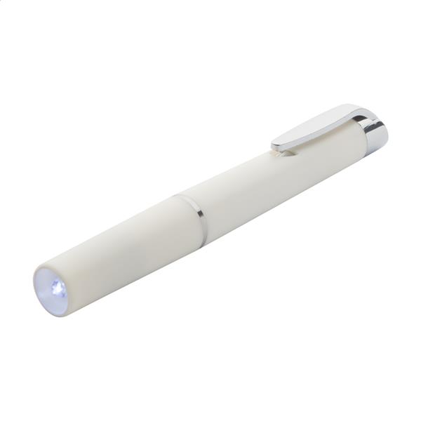 Latarka lekarska w kształcie długopisu. Dostarczana z bateriami.
