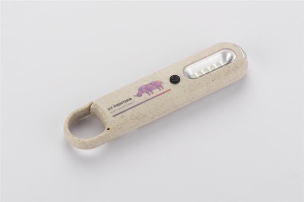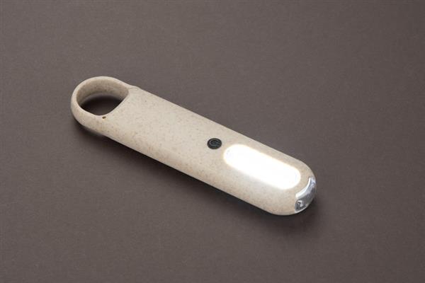 Latarka PROKO 2 zawiera w sobie dwa rodzaje latarki LED: punktową oraz przestrzenną. Włączana jest w prosty sposób przez włącznik na przodzie latarki. Wykonana z materiału z domieszką słomy pszennej. Praktyczny uchwyt pozwala wygodnie zawiesić lub zaczepić latarkę. Zasilanie bateriami: 3 x AAA.
