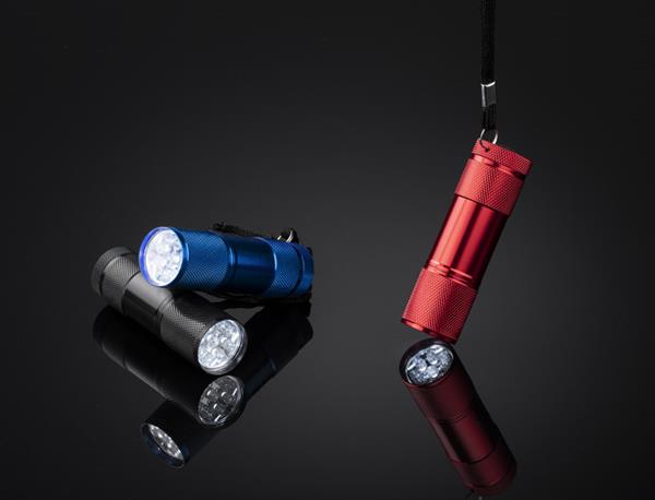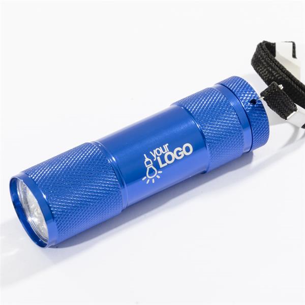 Metalowa latarka LED, 9-diodowa. Logo wygrawerujemy na korpusie latarki.