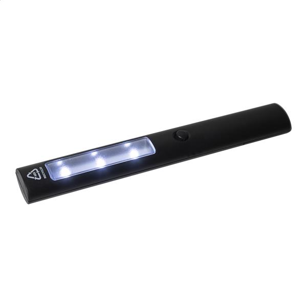 Latarka samochodowa z recyklingowanego ABS, z 3 diodami LED i magnesami z tyłu, umożliwiająca obsługę bez użycia rąk. W zestawie baterie guzikowe.