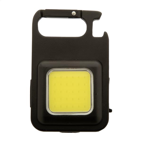 Wielofunkcyjna, aluminiowa latarka z reflektorem COB dużej mocy i wbudowanym akumulatorem USB (400 mAh). Z karabińczykiem, magnesem i otwieraczem do butelek. Z trybami światła mocnego, słabego i migającego. W zestawie kabel do ładowania USB.