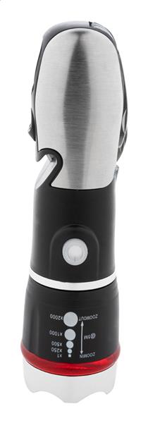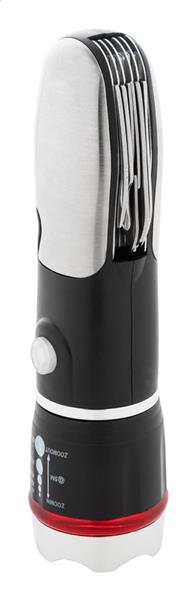 Wielofunkcyjna latarka ABS i ze stali nierdzewnej z młotkiem awaryjnym, przecinakiem pasów bezpieczeństwa i narzędziem wielofunkcyjnym z 9 funkcjami. Z diodą LED z zoomem i 3 trybami oświetlenia. Działa z 3 bateriami AAA, bez baterii.