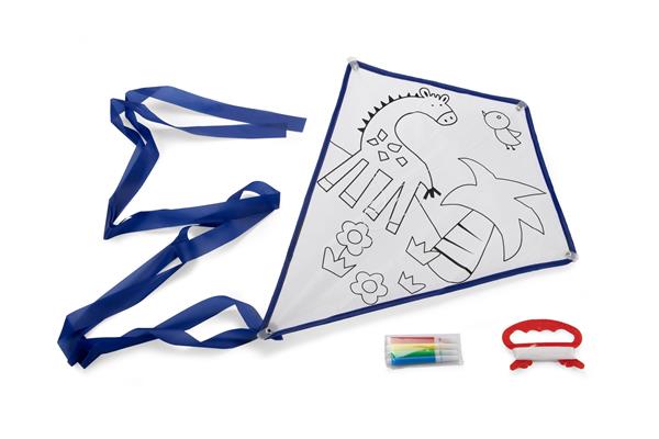 Latawiec do samodzielnego montażu zapewni sporą dawkę dobrej zabawy dla całej rodziny. Ozdobiony został nadrukiem, który można pokolorować według własnego pomysłu za pomocą 4 dołączonych pisaków. W zestawie znajdują się metalowe drążki, latawiec, ogon oraz linka o długości 30 metrów nawinięta na uchwyt.