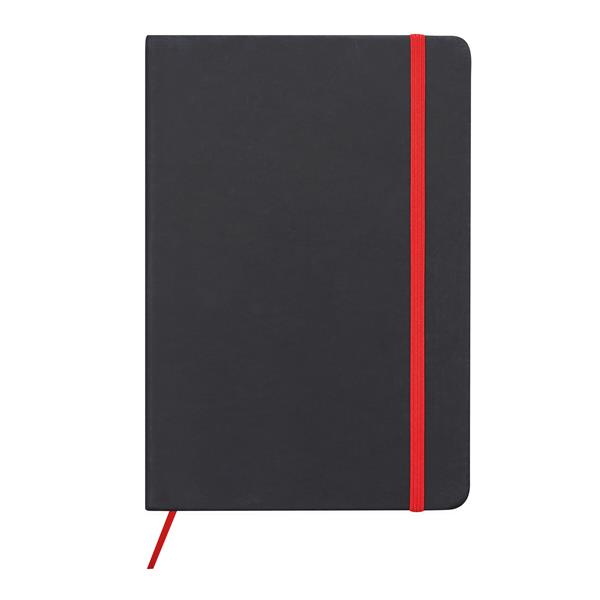 Notatnik LECTOR w rozmiarze A5, z zaokrąglonymi rogami, kolorową taśmą do zamykania, kolorowymi marginesami i zakładką. Czysty, 80 stron, gramatura 70 g/m2. Materiał: Papier/PU Kolor: czarny, czerwony Tagi: notebooki,akcesoria biurowe