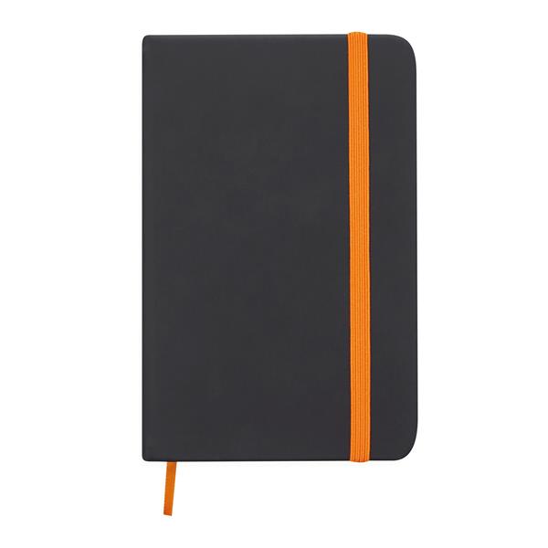 Notatnik LECTOR w rozmiarze A6, z zaokrąglonymi rogami, kolorową taśmą do zamykania, kolorowymi marginesami i zakładką. Czysty, 80 stron, gramatura 70 g/m2. Materiał: Papier/PU Kolor: czarny, pomarańczowy Tagi: notebooki,akcesoria biurowe