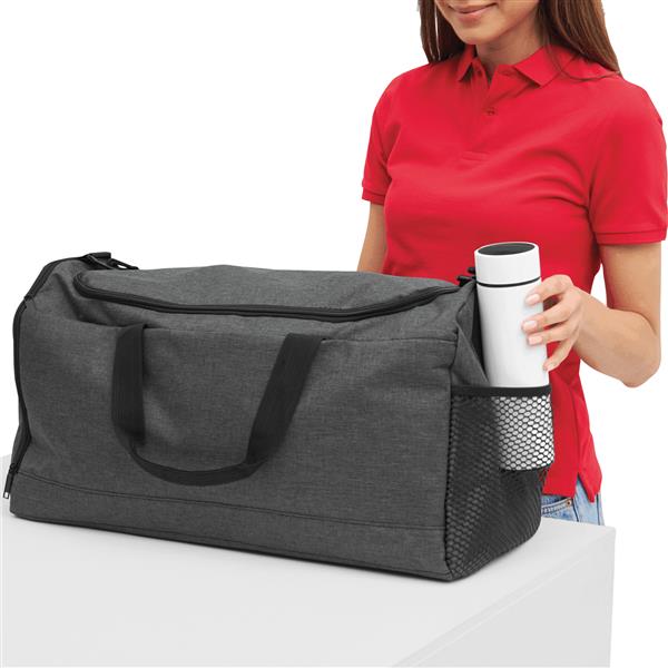 Torba sportowa LEISURE z komorą główną i dużą przednią kieszenią zapinaną na zamek, z boczną komorą na buty, regulowany i odpinany, wyściełany pasek na ramię, wzmocnione uchwyty do noszenia