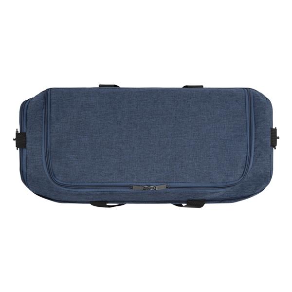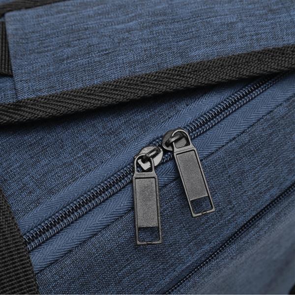 Torba sportowa LEISURE z komorą główną i dużą przednią kieszenią zapinaną na zamek, z boczną komorą na buty, regulowany i odpinany, wyściełany pasek na ramię, wzmocnione uchwyty do noszenia Materiał: 300D Poliester Kolor: niebieski Tagi: Torby sportowe,torby,bagaż,artykuły sportowe,fitness