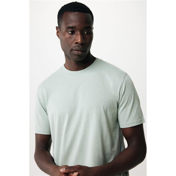 Koszulka, unisex, regularny krój, okrągły dekolt, krótkie rękawy, wykonana w 30% z bawełny z recyklingu i w 70% z bawełny organicznej o gramaturze 160 g/m2, posiada wbudowany znacznik AWARE™, który potwierdza wykorzystanie materiałów z recyklingu, posiada kod QR na metce, który prowadzi do cyfrowego paszportu produktu, 2% wpływów z każdego sprzedanego produktu z kolekcji Impact jest przekazywane na rzecz Water.org