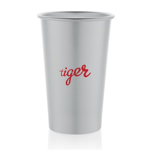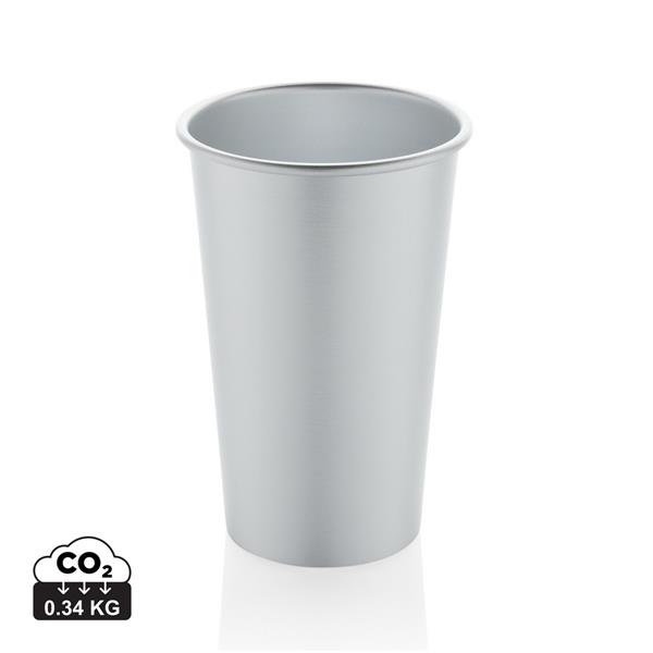 Kubek podróżny 450 ml, lekka konstrukcja, wykonany z aluminium z recyklingu z certyfikatem RCS, całkowita zawartość materiałów obliczona na podstawie wagi całkowitej przedmiotu: 65%, zalecany do zimnych napojów, wyłącznie mycie ręczne, ślad węglowy produktu: 0,34 kg CO2