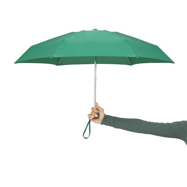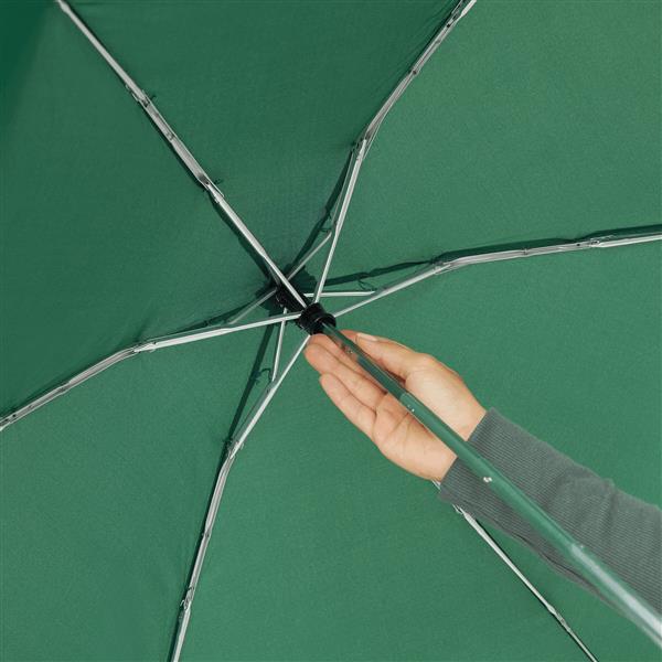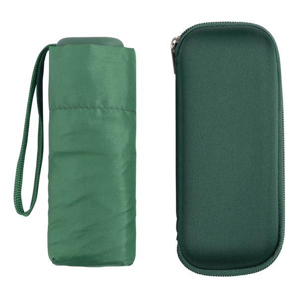 Lekki, super-mini parasol POCKET z etui EVA. Poszycie z poliestru pongee, długość po złożeniu 16 cm, aluminiowe szyny z segmentami z włókna szklanego, aluminiowy stelaż, tylko 164 g, 5 x składana aluminiowa laska, 6 klinów.