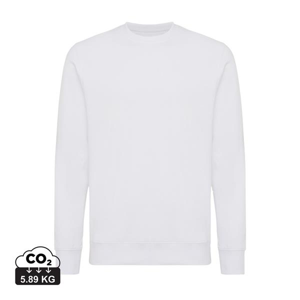 Lekki sweter, unisex, regularny krój, okrągły dekolt, długie rękawy, wykonana w 30% z bawełny z recyklingu i w 70% z bawełny organicznej o gramaturze 280 g/m2, posiada wbudowany znacznik AWARE™, który potwierdza wykorzystanie materiałów z recyklingu, posiada kod QR na metce, który prowadzi do cyfrowego paszportu produktu, 2% wpływów z każdego sprzedanego produktu z kolekcji Impact jest przekazywane na rzecz Water.org, ślad węglowy produktu: 5,89 kg CO2