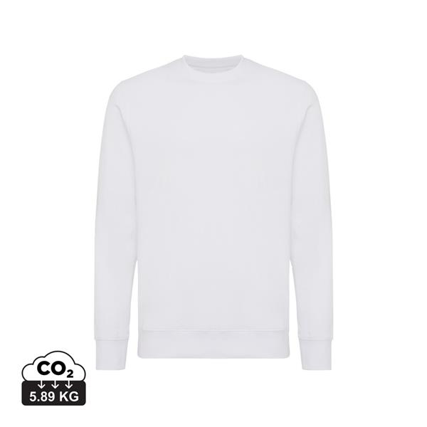 Lekki sweter, unisex, regularny krój, okrągły dekolt, długie rękawy, wykonana w 30% z bawełny z recyklingu i w 70% z bawełny organicznej o gramaturze 280 g/m2, posiada wbudowany znacznik AWARE™, który potwierdza wykorzystanie materiałów z recyklingu, posiada kod QR na metce, który prowadzi do cyfrowego paszportu produktu, 2% wpływów z każdego sprzedanego produktu z kolekcji Impact jest przekazywane na rzecz Water.org, ślad węglowy produktu: 5,89 kg CO2