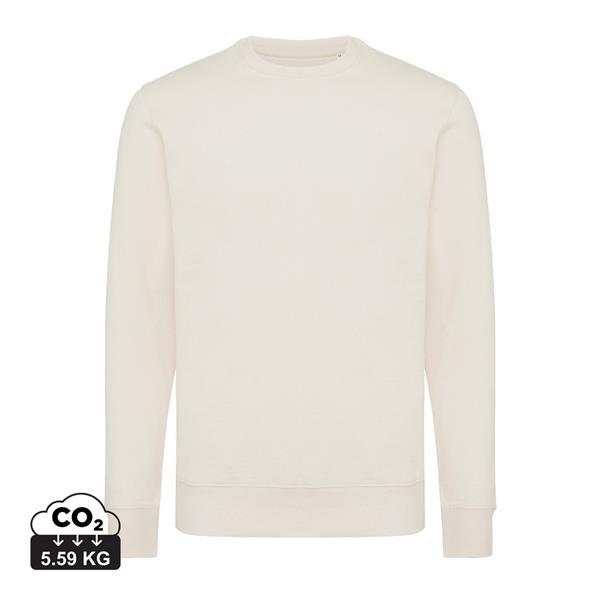 Lekki sweter, unisex, regularny krój, okrągły dekolt, długie rękawy, wykonana w 30% z bawełny z recyklingu i w 70% z bawełny organicznej o gramaturze 280 g/m2, posiada wbudowany znacznik AWARE™, który potwierdza wykorzystanie materiałów z recyklingu, posiada kod QR na metce, który prowadzi do cyfrowego paszportu produktu, 2% wpływów z każdego sprzedanego produktu z kolekcji Impact jest przekazywane na rzecz Water.org, ślad węglowy produktu: 5,59 kg CO2