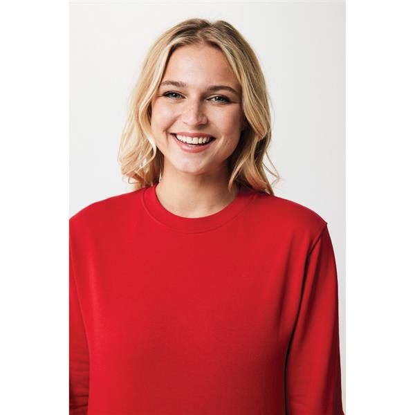 Lekki sweter, unisex, regularny krój, okrągły dekolt, długie rękawy, wykonana w 30% z bawełny z recyklingu i w 70% z bawełny organicznej o gramaturze 280 g/m2, posiada wbudowany znacznik AWARE™, który potwierdza wykorzystanie materiałów z recyklingu, posiada kod QR na metce, który prowadzi do cyfrowego paszportu produktu, 2% wpływów z każdego sprzedanego produktu z kolekcji Impact jest przekazywane na rzecz Water.org