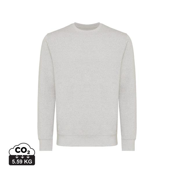 Lekki sweter, unisex, regularny krój, okrągły dekolt, długie rękawy, wykonana w 30% z bawełny z recyklingu i w 70% z bawełny organicznej o gramaturze 280 g/m2, posiada wbudowany znacznik AWARE™, który potwierdza wykorzystanie materiałów z recyklingu, posiada kod QR na metce, który prowadzi do cyfrowego paszportu produktu, 2% wpływów z każdego sprzedanego produktu z kolekcji Impact jest przekazywane na rzecz Water.org, ślad węglowy produktu: 5,59 kg CO2