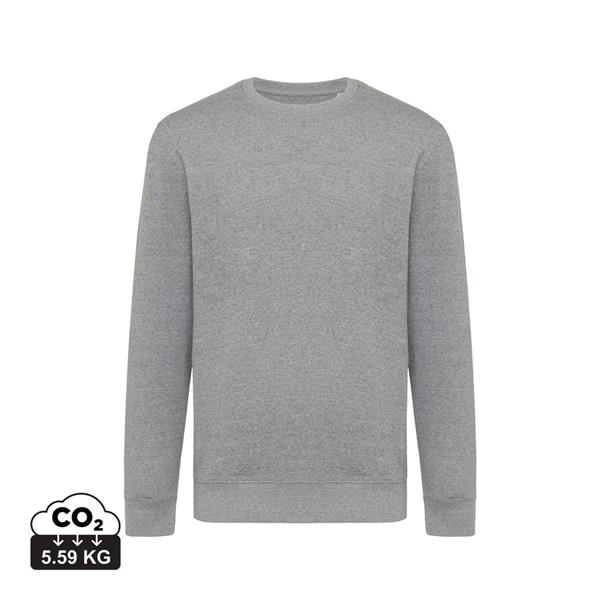 Lekki sweter, unisex, regularny krój, okrągły dekolt, długie rękawy, wykonana w 30% z bawełny z recyklingu i w 70% z bawełny organicznej o gramaturze 280 g/m2, posiada wbudowany znacznik AWARE™, który potwierdza wykorzystanie materiałów z recyklingu, posiada kod QR na metce, który prowadzi do cyfrowego paszportu produktu, 2% wpływów z każdego sprzedanego produktu z kolekcji Impact jest przekazywane na rzecz Water.org, ślad węglowy produktu: 5,59 kg CO2