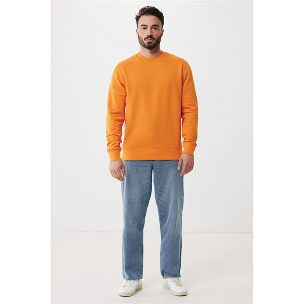 Lekki sweter, unisex, regularny krój, okrągły dekolt, długie rękawy, wykonana w 30% z bawełny z recyklingu i w 70% z bawełny organicznej o gramaturze 280 g/m2, posiada wbudowany znacznik AWARE™, który potwierdza wykorzystanie materiałów z recyklingu, posiada kod QR na metce, który prowadzi do cyfrowego paszportu produktu, 2% wpływów z każdego sprzedanego produktu z kolekcji Impact jest przekazywane na rzecz Water.org, ślad węglowy produktu: 7,04 kg CO2