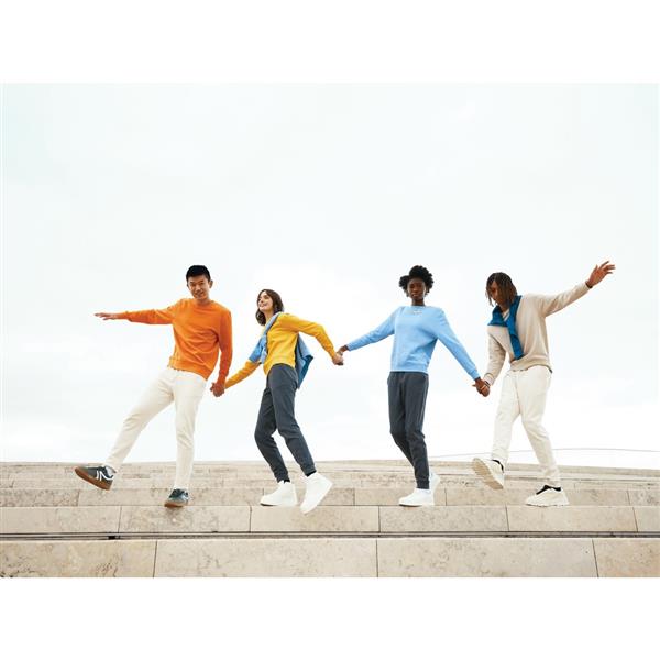Lekki sweter, unisex, regularny krój, okrągły dekolt, długie rękawy, wykonana w 30% z bawełny z recyklingu i w 70% z bawełny organicznej o gramaturze 280 g/m2, posiada wbudowany znacznik AWARE™, który potwierdza wykorzystanie materiałów z recyklingu, posiada kod QR na metce, który prowadzi do cyfrowego paszportu produktu, 2% wpływów z każdego sprzedanego produktu z kolekcji Impact jest przekazywane na rzecz Water.org, ślad węglowy produktu: 7,04 kg CO2