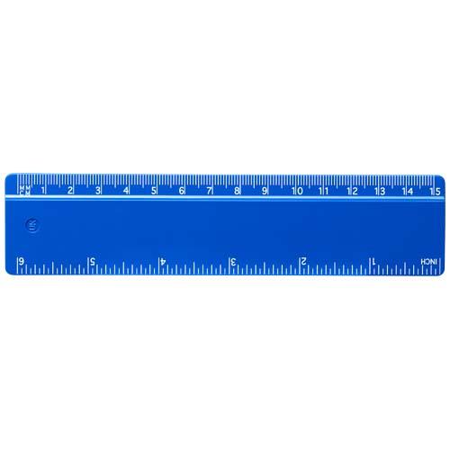 Linijka Renzo o długości 15 cm wykonana z tworzywa sztucznegoSolidna linijka z obrysami w calach i centymetrach. Wyłącznie w przypadku zamówienia ze znakowaniem posiada skalę.Długość: 15,8 cm Szerokość: 3,7 cm Wysokość: 0,3 cm