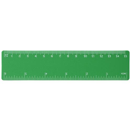 Linijka Rothko PP o długości 15 cmElastyczna, lekka linijka z obrysami w calach i centymetrach.Długość: 15,9 cm Szerokość: 3,7 cm Wysokość: 0,1 cm Materiał: Polipropylen Kolor: Szroniony zielony