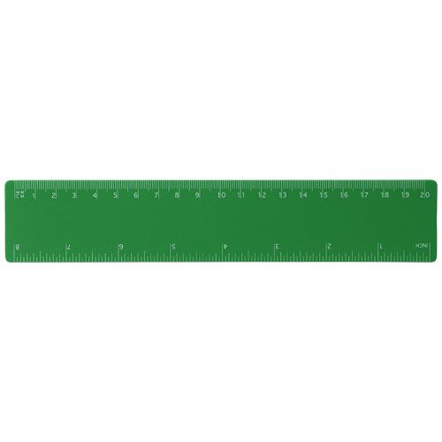 Linijka Rothko PP o długości 20 cmElastyczna, lekka linijka z obrysami w calach i centymetrach.Długość: 20,9 cm Szerokość: 4 cm Wysokość: 0,1 cm Materiał: Polipropylen Kolor: Zielony