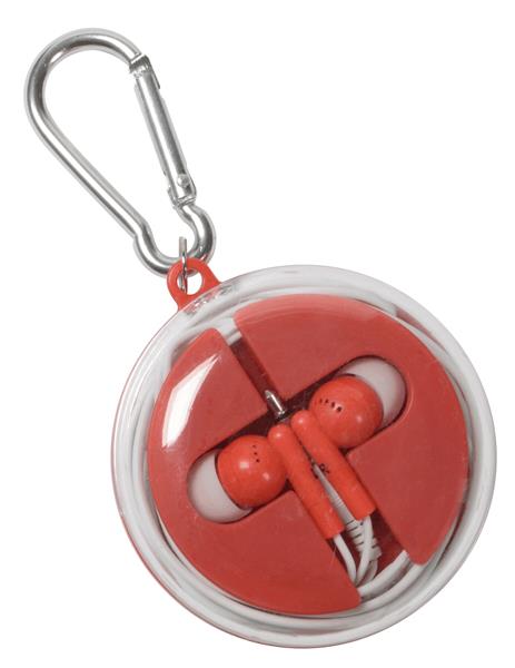 Słuchawki douszne LISTEN & CHARGE z uniwersalnym kablem do ładowania, z wtyczką 3,5 mm typu jack. Długość kabla słuchawek ok. 126 cm, opakowanie w pasującym kolorze, z 2 złączami do ładowania urządzeń elektronicznych i smartfonów o długość kabla ok. 28 cm, z karabińczykiem.