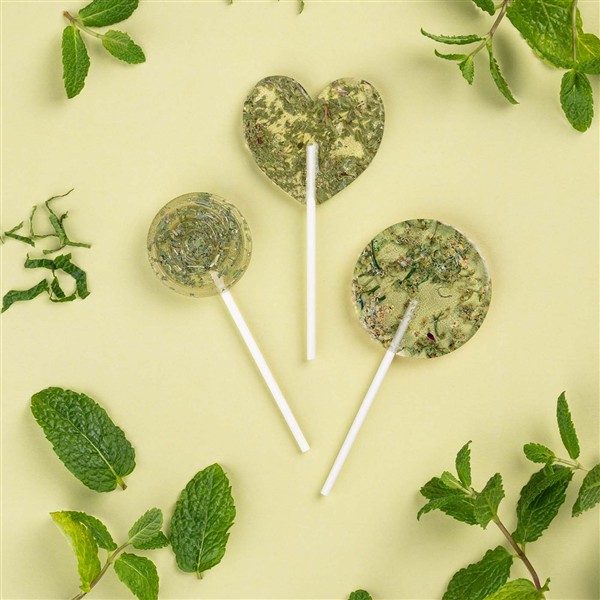 Patyczek lizaka wykonany jest z papieru z certyfikatem FSC, co podkreśla ekologiczny charakter produktu. Lizak zawinięty jest w folię, na której znajduje się personalizowana naklejka – doskonałe miejsce na Twoje logo, hasło reklamowe lub dowolną grafikę. Do lizaka dołączona jest ulotka w kształcie liścia typu flyer – kolejna powierzchnia do spersonalizowania.