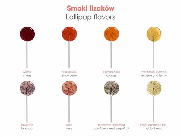 Polecamy też soczyście owocowy wariant – lizaki z dodatkiem soków owocowych. Dostępne są w 4 wersjach smakowych: jabłko, truskawka, pomarańcza i cytryna. Ich kolor i smak to zasługa naturalnych soków owocowych.