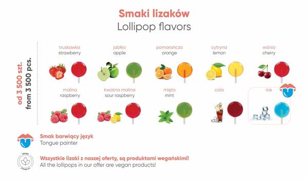 Mały lizak to prawdziwa uczta dla zmysłów. Produkowany w naszej Karmelarni według autorskiej receptury, zachwyca jakością i świeżością. Bez sztucznych konserwantów i barwników, oferujemy naturalne smaki: truskawkowy, jabłkowy, pomarańczowy i cytrynowy. Masz inny pomysł? Zrealizujemy go specjalnie dla Ciebie! Każdy lizak z logo to produkt o czystym, prostym składzie.