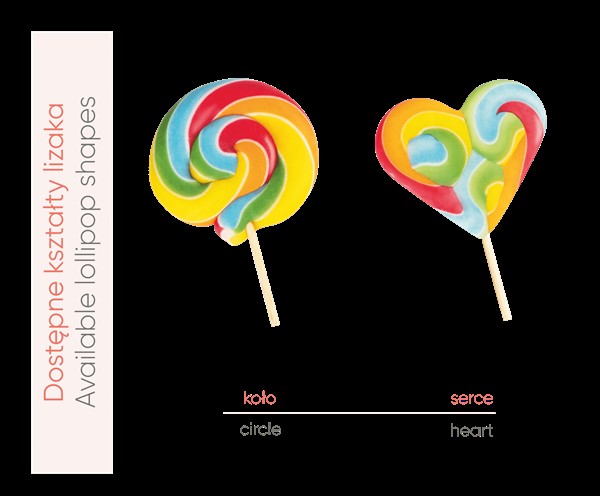 Lizak dostępny jest w dwóch uroczych kształtach do wyboru – klasycznym kole lub romantycznym sercu. Każdy egzemplarz pakujemy w monofolię w 100% nadającą się do recyklingu, co podkreśla ekologiczny charakter produktu. Na opakowaniu umieszczamy etykietę, którą możesz spersonalizować według własnych potrzeb. Wybierz wersję papierową w kolorze białym lub kraft albo zdecyduj się na transparentną etykietę – idealną do subtelnego oznakowania. Lizak osadzony jest na drewnianym patyczku, co dodatkowo wzmacnia jego naturalny i ekologiczny wygląd.