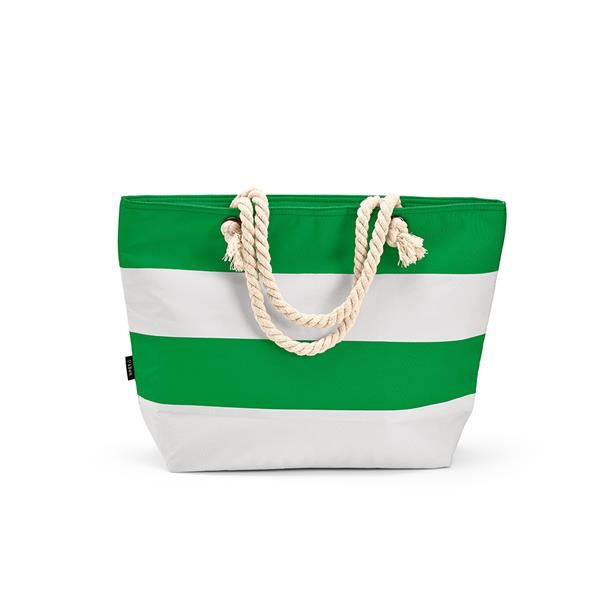 Udoskonal swoje doświadczenie dzięki naszej ekologicznej lodówce. Wykonana z 600D rPET, posiada przednią kieszeń. Posiada również poziome kolorowe paski i uchwyty z bawełny pochodzącej z recyklingu. Podkreśl swój stylowy wypoczynek w sposób zrównoważony.