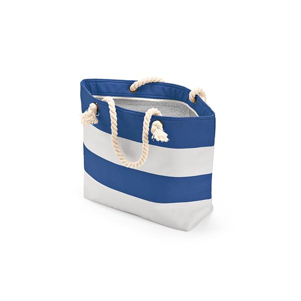 Udoskonal swoje doświadczenie dzięki naszej ekologicznej lodówce. Wykonana z 600D rPET, posiada przednią kieszeń. Posiada również poziome kolorowe paski i uchwyty z bawełny pochodzącej z recyklingu. Podkreśl swój stylowy wypoczynek w sposób zrównoważony.