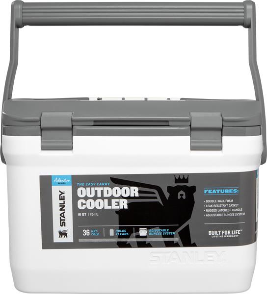 Lodówka Stanley Adventure Easy Carry Outdoor jest niezwykle lekka, szczelna i wyposażona w dwukrotnie większą izolację piankową niż typowe lodówki. Produkt idealnie nadaję się w podróż np. do zabrania na ognisko, wyprawę wędkarską i inne wycieczki. Lodówka jest wystarczająco pojemna, aby pomieścić 21 puszek ulubionego piwa lub napojów gazowanych i może utrzymać lód w stanie zamrożonym przez ponad dobę. Lodówka posiada nawet regulowany system linek do mocowania ulubionej butelki Stanleya do pokrywy.