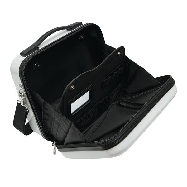Kosmetyczka LONDON 2.0 to ekskluzywny design i praktyczne wyposażenie. Pakowana obustronnie, z elastyczną przegrodą w komorze głównej. Z lusterkiem, elastycznymi pętelkami i kieszeniami z tasiemkami. Odpinana kieszeń wewnętrzna z zamkiem błyskawicznym, odpinany i regulowany pasek na ramię. Możliwość przymocowania do uchwytu walizki. Zamek szyfrowy.