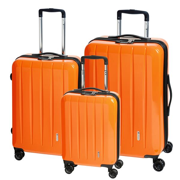 Zestaw walizek LONDON 2.0, 3-częściowy: ekskluzywne wyposażenie i wzornictwo, możliwość pakowania po obu stronach, możliwość rozszerzenia dla rozmiarów L + XL o dodatkowe ok. 10% objętości pakunkowej, wnętrze z przegrodą i przegródkami z siatki, aluminiowy uchwyt z blokadą u przyciskiem, 4 lekko pracujące podwójne koła obrotowe z możliwością obrotu o 360°, w zestawie 3-cyfrowy zamek szyfrowy TSA, każda walizka ma torbę ochronną.