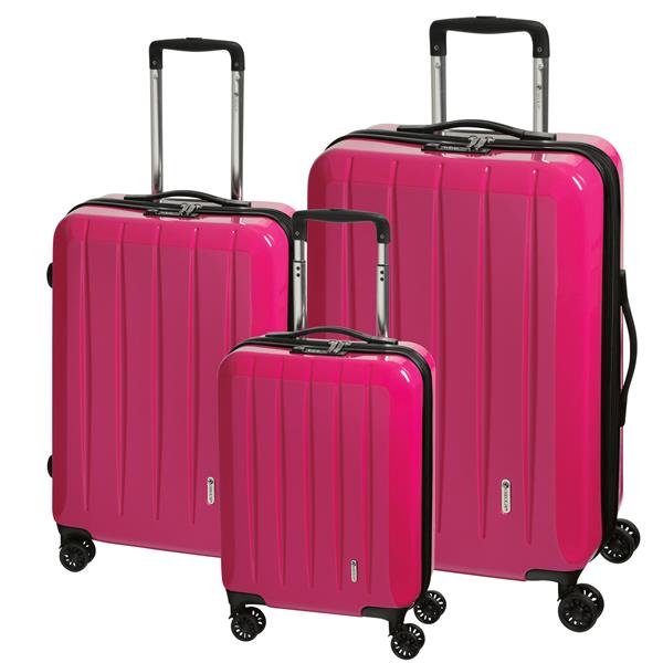 Zestaw walizek LONDON 2.0, 3-częściowy: ekskluzywne wyposażenie i wzornictwo, możliwość pakowania po obu stronach, możliwość rozszerzenia dla rozmiarów L + XL o dodatkowe ok. 10% objętości pakunkowej, wnętrze z przegrodą i przegródkami z siatki, aluminiowy uchwyt z blokadą u przyciskiem, 4 lekko pracujące podwójne koła obrotowe z możliwością obrotu o 360°, w zestawie 3-cyfrowy zamek szyfrowy TSA, każda walizka ma torbę ochronną.