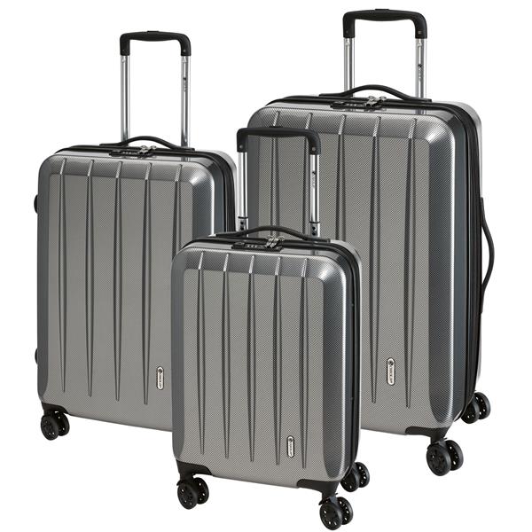 Zestaw walizek LONDON 2.0, 3-częściowy: ekskluzywne wyposażenie i wzornictwo, możliwość pakowania po obu stronach, możliwość rozszerzenia dla rozmiarów L + XL o dodatkowe ok. 10% objętości pakunkowej, wnętrze z przegrodą i przegródkami z siatki, aluminiowy uchwyt z blokadą u przyciskiem, 4 lekko pracujące podwójne koła obrotowe z możliwością obrotu o 360°, w zestawie 3-cyfrowy zamek szyfrowy TSA, każda walizka ma torbę ochronną.