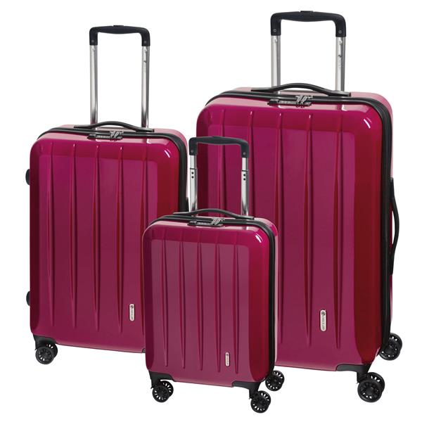 Zestaw walizek LONDON 2.0, 3-częściowy: ekskluzywne wyposażenie i wzornictwo, możliwość pakowania po obu stronach, możliwość rozszerzenia dla rozmiarów L + XL o dodatkowe ok. 10% objętości pakunkowej, wnętrze z przegrodą i przegródkami z siatki, aluminiowy uchwyt z blokadą u przyciskiem, 4 lekko pracujące podwójne koła obrotowe z możliwością obrotu o 360°, w zestawie 3-cyfrowy zamek szyfrowy TSA, każda walizka ma torbę ochronną.