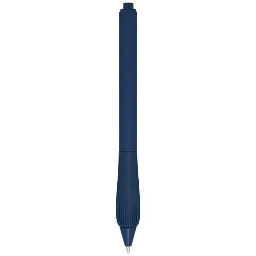 Długopis z tworzyw sztucznych pochodzących z recyklingu, z gumowanym korpusem i uchwytem wykonanym z TPR. Kolor tuszu: Niebieski. Żywotność: 1000 metrów. Rozmiar stalówki: 1,0 mm.
