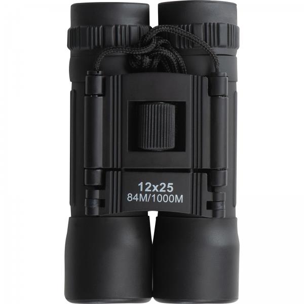 Metalowa lornetka o zasięgu 84M/1000M ze sznureczkiem i ściereczką do czyszczenia. Zapakowana w materiałowe etui.