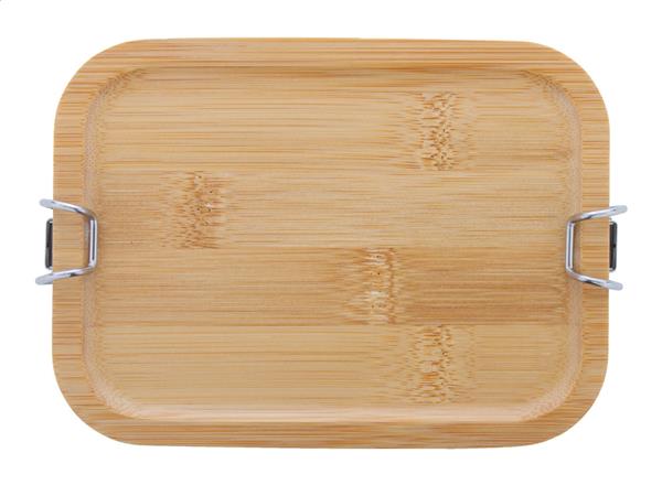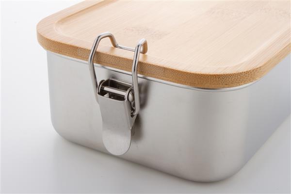 Pudełko śniadaniowe na lunch ze stali nierdzewnej z bambusową pokrywką i bezpiecznym zamknięciem na klamry, 750 ml.