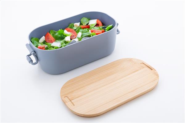 Lunch box wykonany z tworzywa PP z bambusową pokrywką i zapięciem na klamrę, 1000 ml.