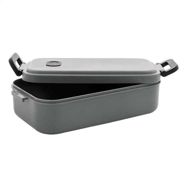Lunch box wykonany z tworzywa PP, z hermetyczną pokrywką, silikonowym zaworem i zamknięciem na klamrę, 1000 ml.