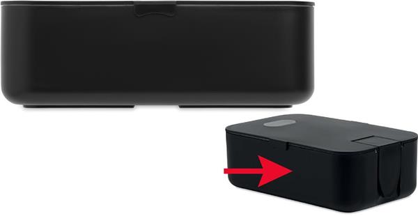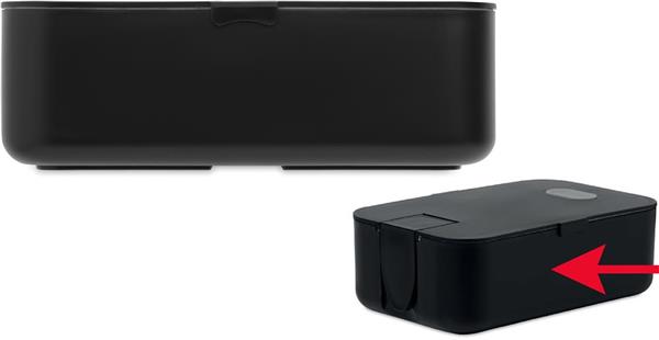 Lunchbox wykonany z PP z wbudowaną funkcją podstawki pod telefon.