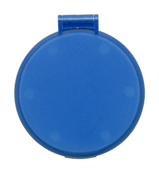 Okrągłe lusterko kieszonkowe w przezroczystej obudowie z recyklingowanego PS. Description: Okrągłe lusterko kieszonkowe w przezroczystej obudowie z recyklingowanego PS. Primary Color: niebieski Rozmiar: o62 mm Material 1: Plastik PS z recyklingu