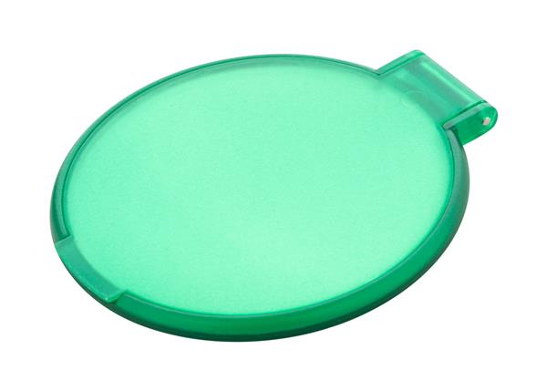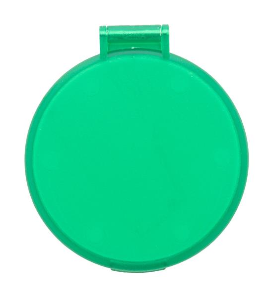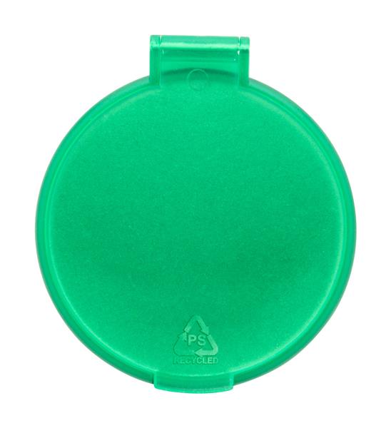Okrągłe lusterko kieszonkowe w przezroczystej obudowie z recyklingowanego PS. Description: Okrągłe lusterko kieszonkowe w przezroczystej obudowie z recyklingowanego PS. Primary Color: zielony Rozmiar: o62 mm Material 1: Plastik PS z recyklingu