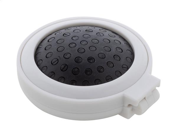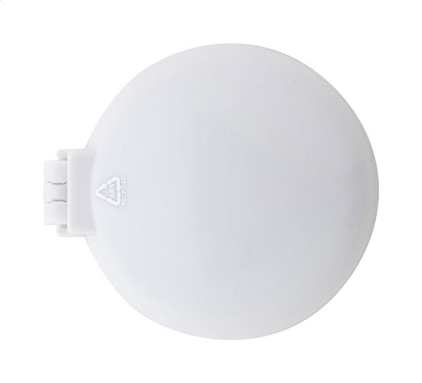 Składana szczotka do włosów wykonana z przetworzonego ABS z kieszonkowym lusterkiem. Description: Składana szczotka do włosów wykonana z przetworzonego ABS z kieszonkowym lusterkiem. Primary Color: biały Material 1: ABS z recyklingu Rozmiar: o66×28 mm