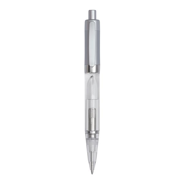 Długopis LUXOGRAPH LIGHT z małym podświetleniem LED aktywowanym przez mechanizm sprężynowy. Długopis z tworzywa sztucznego, świeci w kolorze czerwonym, tusz niebieski.
