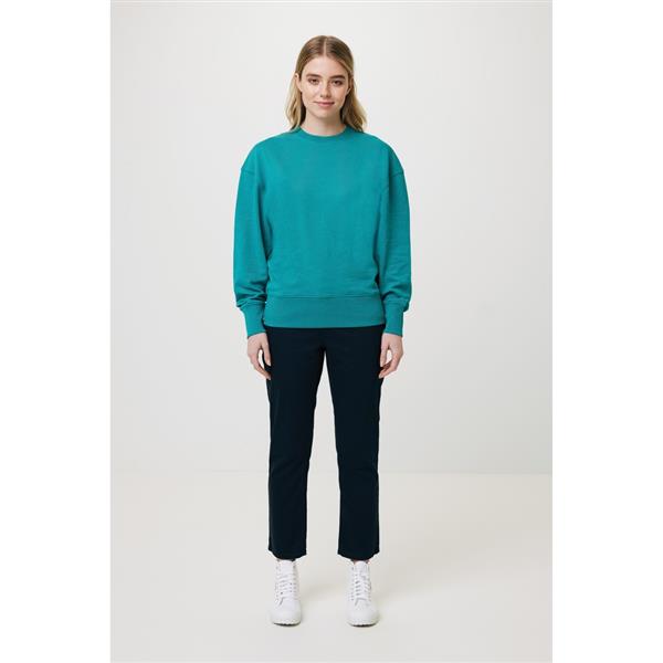 Bluza, unisex, długie rękawy, luźny krój, splot Brushed Sweat, okrągły dekolt, wykonana w 50% z bawełny z recyklingu i w 50% z bawełny organicznej 340 m/m2, bez dodatku poliestru, posiada wbudowany znacznik AWARE™, który potwierdza wykorzystanie materiałów z recyklingu, posiada kod QR na metce, który prowadzi do cyfrowego paszportu produktu, 2% wpływów z każdego sprzedanego produktu z kolekcji Impact jest przekazywane na rzecz Water.org, ślad węglowy produktu: 11,93 kg CO2